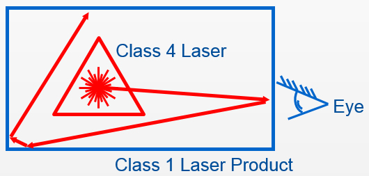 Class 3B and Class 4 lasers represent a significant risk to the eye and skin. In most applications, the goal is to eliminate the chance of exposure to the laser beam. This effectively leaves us with a CLASS 1 LASER PRODUCT (safe).